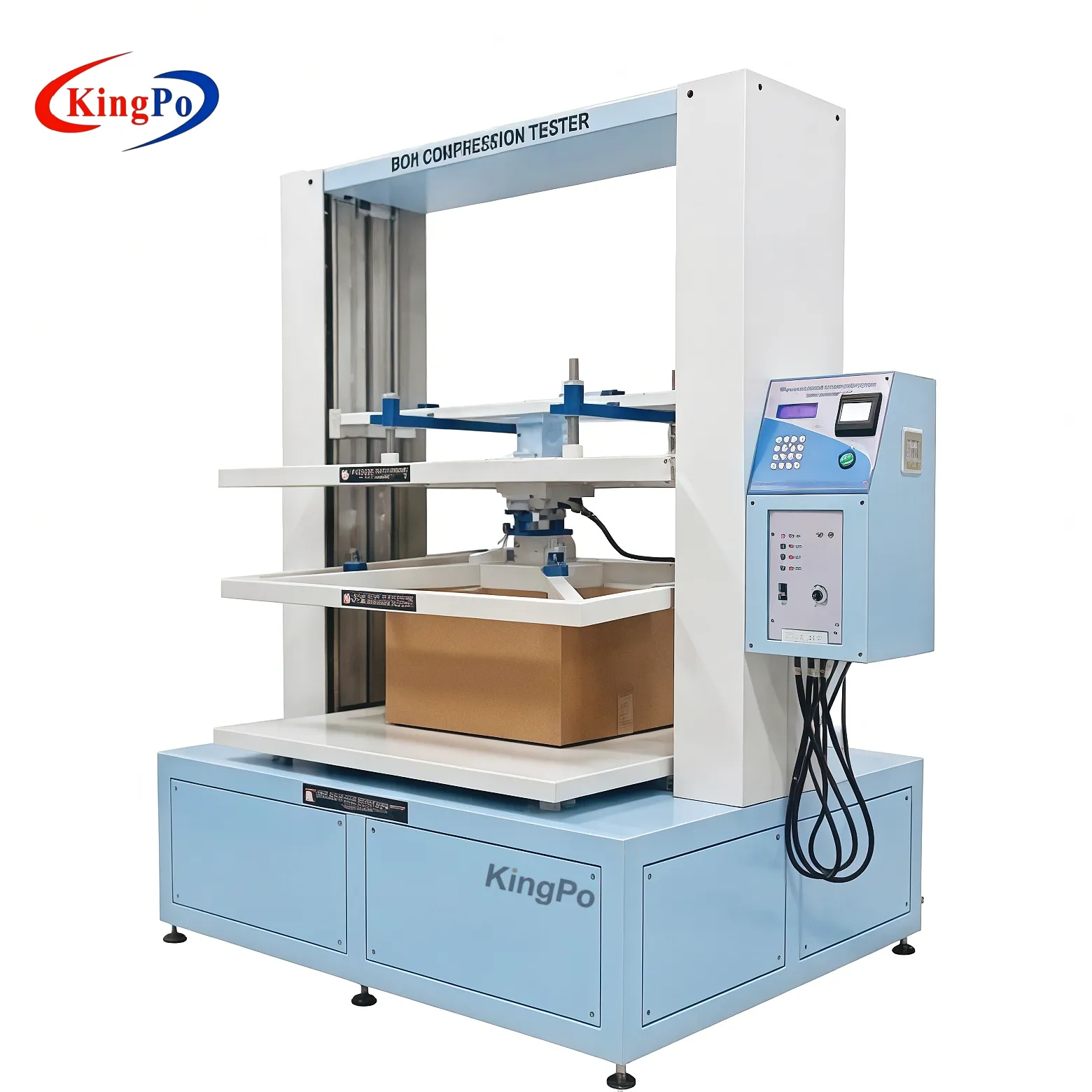 The Box Compression Tester is a professional, high-precision mechanical test system manufactured by KingPo. It is specifically engineered to evaluate the compression strength, deformation behavior and stacking performance of corrugated cartons, honeycomb boxes, paper cans, plastic drums and other transport packaging under controlled load conditions in accordance with ISO 12048.