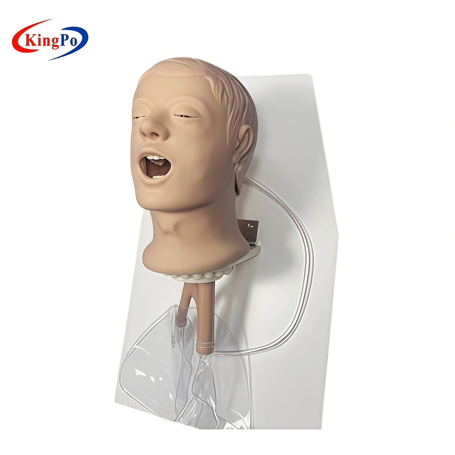 The ISO 9360-2 Figure 1 Simulated Patient Head | Passive HME Testing Model is a professional anatomical simulation device manufactured by KingPo. It is specifically designed to replicate the human head and upper airway for performance testing of passive heat and moisture exchangers (HMEs) intended for tracheostomized patients, in full accordance with ISO 9360-2 Figure 1.