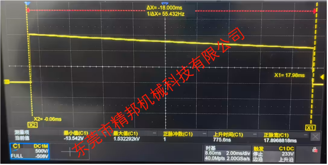 - Output voltage range: 0โ2 kV (peak up to 1.53 kV)